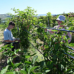– Ягодники мы заложили в 2019 году, когда получили грант 1,4 млн рублей на материалы для установки заграждений и систему орошения. Ягодники у нас на площади около 2 га: 1,5 га ежевики и