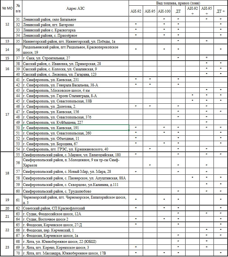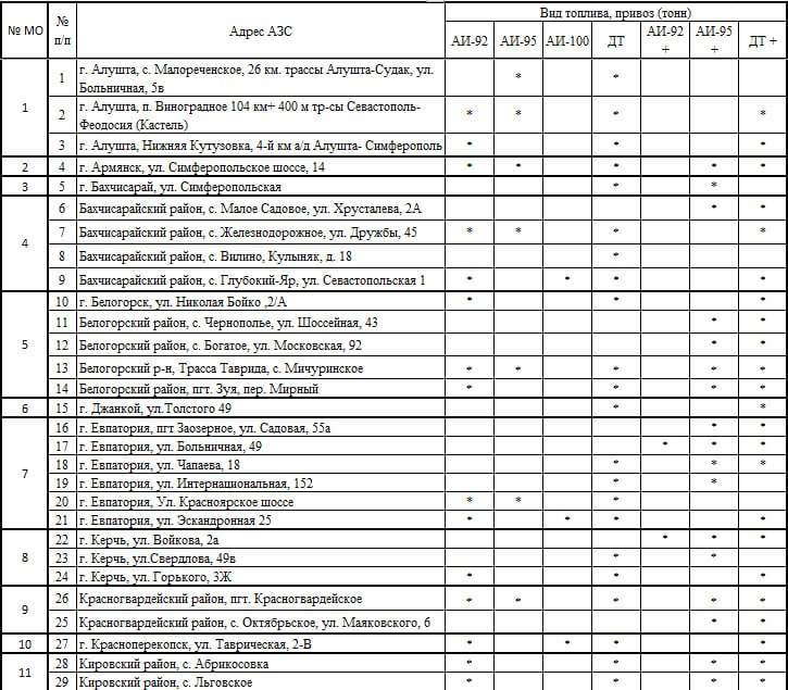 "В связи с этим, начиная с сегодняшнего дня и до нормализации поставок, будем ежедневно в утренние часы информировать крымчан о том, на каких АЗС можно свободно приобрести бензин марок АИ-92 и АИ-95, а также дизельное топливо. Сегодня топливо в свободной продаже будет доступно по 70 адресам", - сказалГоцанюк.
