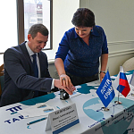 А финалом мероприятия стало торжественное гашение художественных маркированных конвертов. Оно прошло в бизнес-зале железнодорожного вокзала, который, к слову, тоже был открыт в этот день. На штемпеле изображён логотип поезда «Таврия», а также указано число – 25.12.2024.