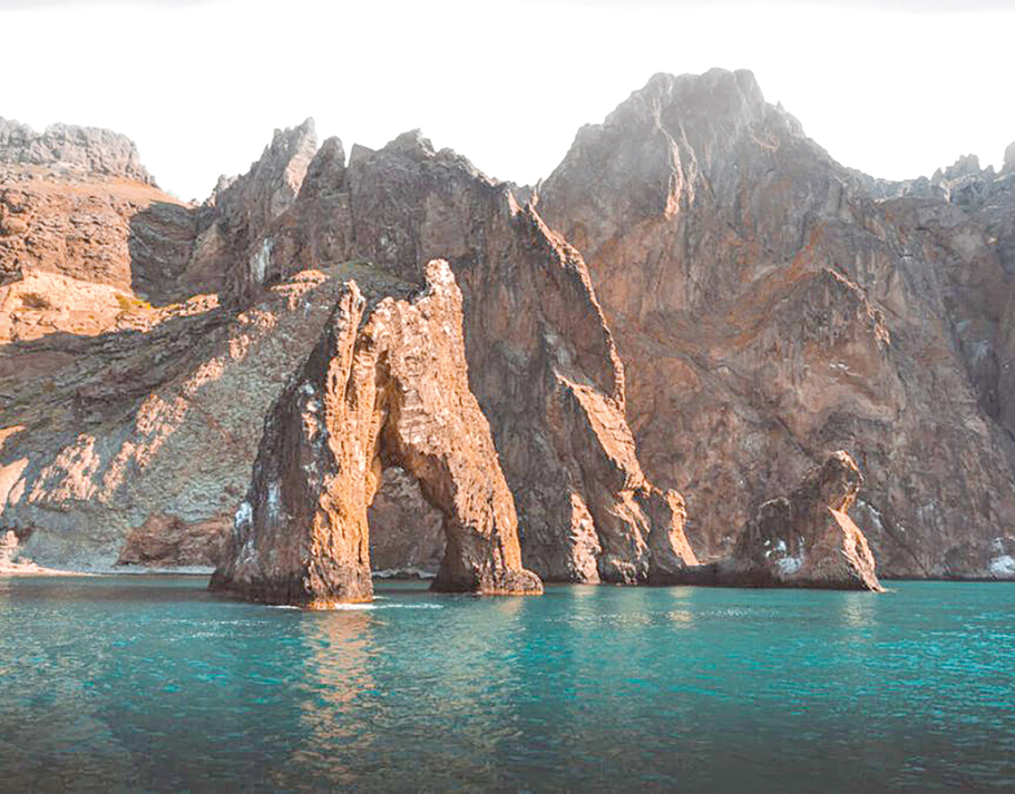 Чёрную гору (так звучит в переводе слово «Карадаг») справедливо называют раскрытой книгой истории планеты. Окаменелая мощь вызывала благоговейный трепет и всплеск вдохновения у классиков отечественной литературы. Однако все восторженные слова меркнут перед впечатлением, которое производят обрывы, украшенные скульптурами: Иван-Разбойник, Лев, Золотые Ворота, Чёртов Палец. В далёкие времена здесь бушевали могучие силы молодой Земли. В результате вулкан взорвался, и большую часть Чёрной горы поглотило Чёрное море. Что-то потустороннее ощущается в этом месте. И действительно, один из хребтов удивительно напоминает голову спящего Мефистофеля: нос крючком, острая бородка, лицо, обращённое к небу…
