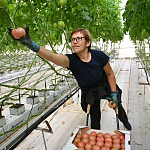 Одно хозяйство, где идёт постоянный сбор урожая, расположено в селе Айвовом Бахчисарайского района. Для выращивания томатов здесь создали все необходимые условия. В том числе продумали индивидуальную систему полива – вода поступает к каждому растению отдельно. Рассада изначально высаживается в специальные кубики из торфа – так у кустов быстрее развивается корневая система, и они сразу начинают интенсивно расти. Ежедневно в теплице сохраняют температуру до 22 градусов. Для лета предусмотрена система охлаждения воздуха. Примечательно, что для опыления растений здесь используют наших крымских шмелей – их привозят в специальных коробках-домиках и выпускают на «поля».