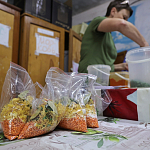 Одно из направлений работы центра – приготовление сублимированной продукции. Неравнодушные женщины нарезают овощи, сушат их в специальных аппаратах, а затем собирают супы из сухих заготовок: гороховый, гречневый, чечевичный и борщ. Каждый пакет фасуется в коробку, куда обязательно вкладывают пожелания и молитву.
