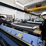 – Его задача – зарядить, заправить, вытащить, проконтролировать качество, чтобы не было царапин. Он спокойно работает автономно, – рассказал начальник производства.