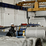В цехе обратили внимание на прокатные линии. Оператор на линии работает один.