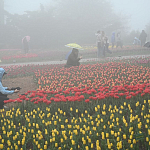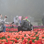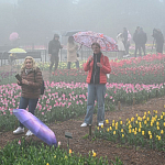 Открытие Парада тюльпанов смело можно сравнить с открытием сезона в Крыму. Правда в этом году мероприятие сопровождали туман, пришедший с моря, и мелкий дождь. Но это не помешало многочисленным гостям оценить палитру соцветий этих ярких цветов. Тюльпан – символ нежности и красоты. В этот раз крымская погода это подчеркнула.