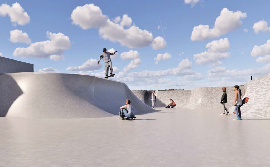 Изюминкой проекта станет скейт-парк размером 20 на 36 метров. Сюда со всей округи смогут приходить люди, чтобы заниматься экстремальными видами спорта на скейтбордах, стритбордах, роликовых коньках, трюковых самокатах и велосипедах. При создании скейт-парка предусмотрят такие фигуры, как рампы, разгонки, перила, фанбоксы, пирамиды, ступеньки, а также многое другое для выполнения трюков.