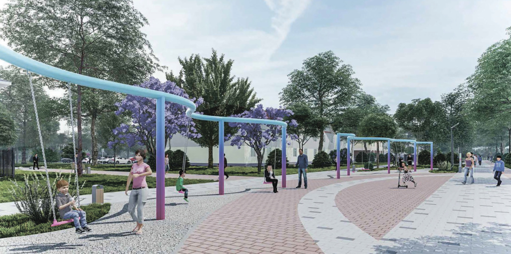 9 600 метров тротуарной плитки, установить около 90 скамеек и 60 урн, игровую детскую площадку и красивую колоннаду.