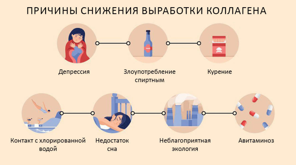 Причины снижения выработки коллагена - Инфографика