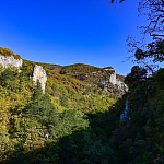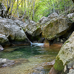 Большой каньон – самый грандиозный и популярный каньон Крымского полуострова площадью 300 гектаров. Сюда едут ради Ванны молодости, дуба Почтового, Голубого озера, Яблоневого брода и источника Пания. Длина – около четырёх километров. Но только первая его часть, достигающая Ванны молодости, является оборудованным маршрутом: протяжённость тропы для туристов – около полутора километров.