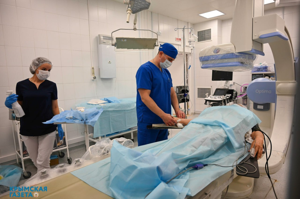 В Республиканской клинической больнице им. Семашко прошла первая в Крыму эндоваскулярная имплантация аортального клапана. Операцию 78-летней пациентке провёл специалист из Первого Санкт-Петербург-ского медуниверситета им. Павлова. Методика позволяет заменить клапан через прокол в бедренной артерии без открытой операции. Это спасение для пожилых пациентов с высоким риском смертности. Вмешательство состоялось в рамках конференции «Рентгенохирургия. Крым – 2025», объединившей 150 специалистов из Крыма, новых регионов и других субъектов России. За прямой трансляцией операций наблюдали из пяти городов одновременно, что позволило обмениваться ценным опытом.
