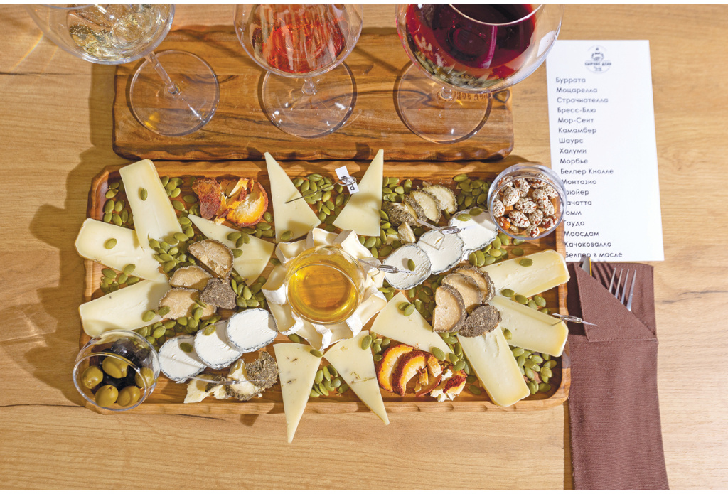 сортов сыра – от твёрдых до мягких с благородной белой плесенью. Гостей ждут несколько локаций: дегустационный зал, где к 5-10 видам сыра подают крымское вино, цех и хранилище для созревания твёрдых и полутвёрдых сыров, кафе, шеф-повар которого готовит сырные блюда, и магазин, где можно купить понравившийся продукт. Кроме того, проводятся мастер-классы для детей и взрослых.