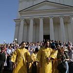 В этот невероятно тёплый день на службу в главном храме крымской столицы собралось огромное количество прихожан.