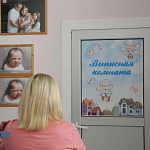 Тем временем завершён ремонт ещё одной важной зоны – выписной комнаты, где новорождённые впервые встречаются с семьёй. Созданы современные и максимально уютные условия для выписки, установлена фотозона для памятных семейных фотографий с новорождённым.