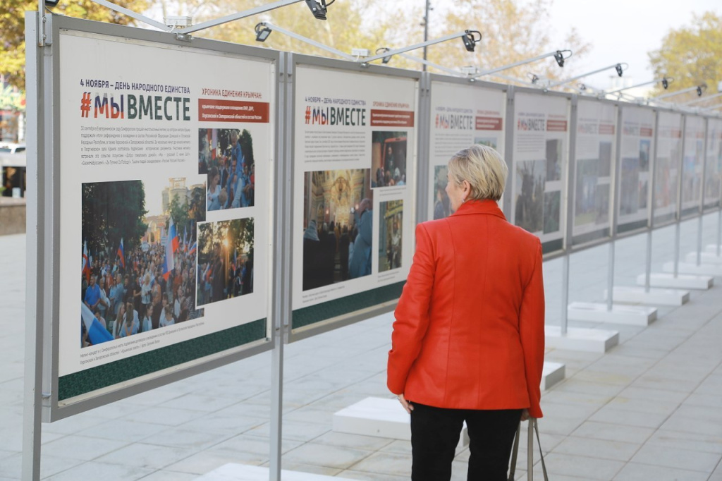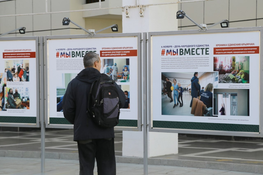 Накануне Дня народного единства в Симферополе открылась выставка фотографий под названием «#МЫВМЕСТЕ. Хроника единения крымчан». Экспозиция посвящена поддержке жителями республики участников специальной военной операции и помощи новым субъектам России – Донецкой и Луганской народных республик, Херсонской и Запорожской областей.