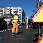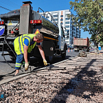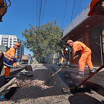 Дорожники работают в городе. Так, на улице им. 51-й Армии в Симферополе ремонтируют тротуары.