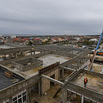 – В данный момент ведутся работы по закрытию контуров корпусов, кладка наружных и внутренних стен, затем прокладываем электропроводку и штукатурим стены. Параллельно по всем этажам делаем вытяжную и приточную вентиляцию. Этими работами будем заниматься весь осенне-зимний период, а уже весной, при благоприятных погодных условиях, начнём отделку.