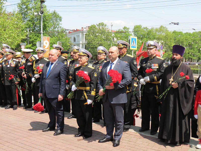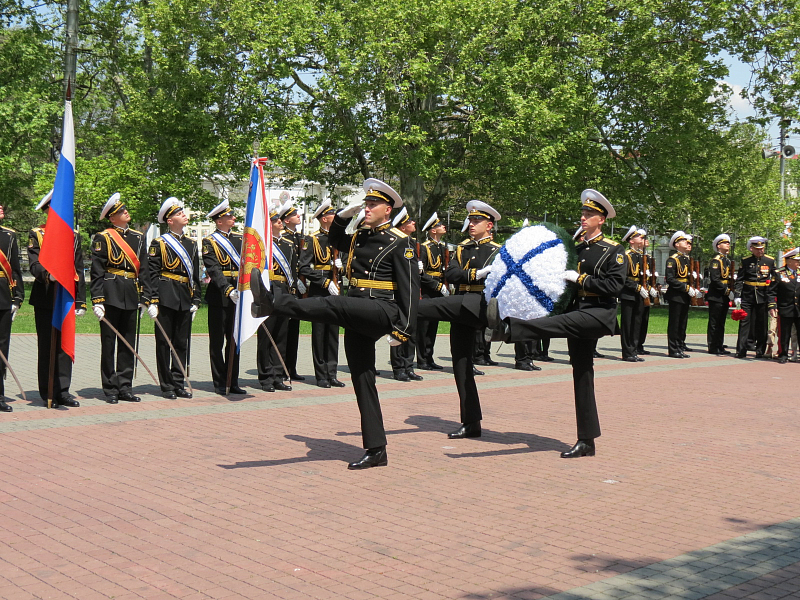 Затем командующий Черноморским флотом вице-адмирал Виктор Соколов, губернатор Севастополя Михаил Развожаев, спикер Законодательного собрания города Владимир Немцев, заместители командующего, начальники управлений, отделов и служб ЧФ в сопровождении роты почетного караула возложили цветы к памятнику основательнице Черноморского флота и города Севастополя императрице Екатерине II, а также к Мемориальной стене в честь героической обороны Севастополя 1941-1942 гг.