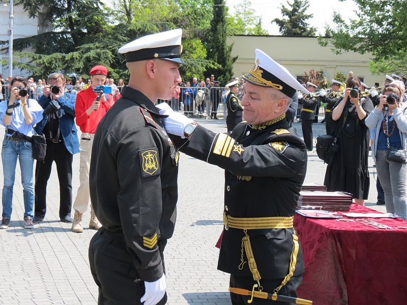 На площади адмирала П.С.Нахимова прошло торжественное построение, в ходе которого командующий флотом, губернатор, спикер Заксобрания вручили ряду военнослужащих государственные награды Российской Федерации, ведомственные награды Минобороны России, благодарности и почетные грамоты.