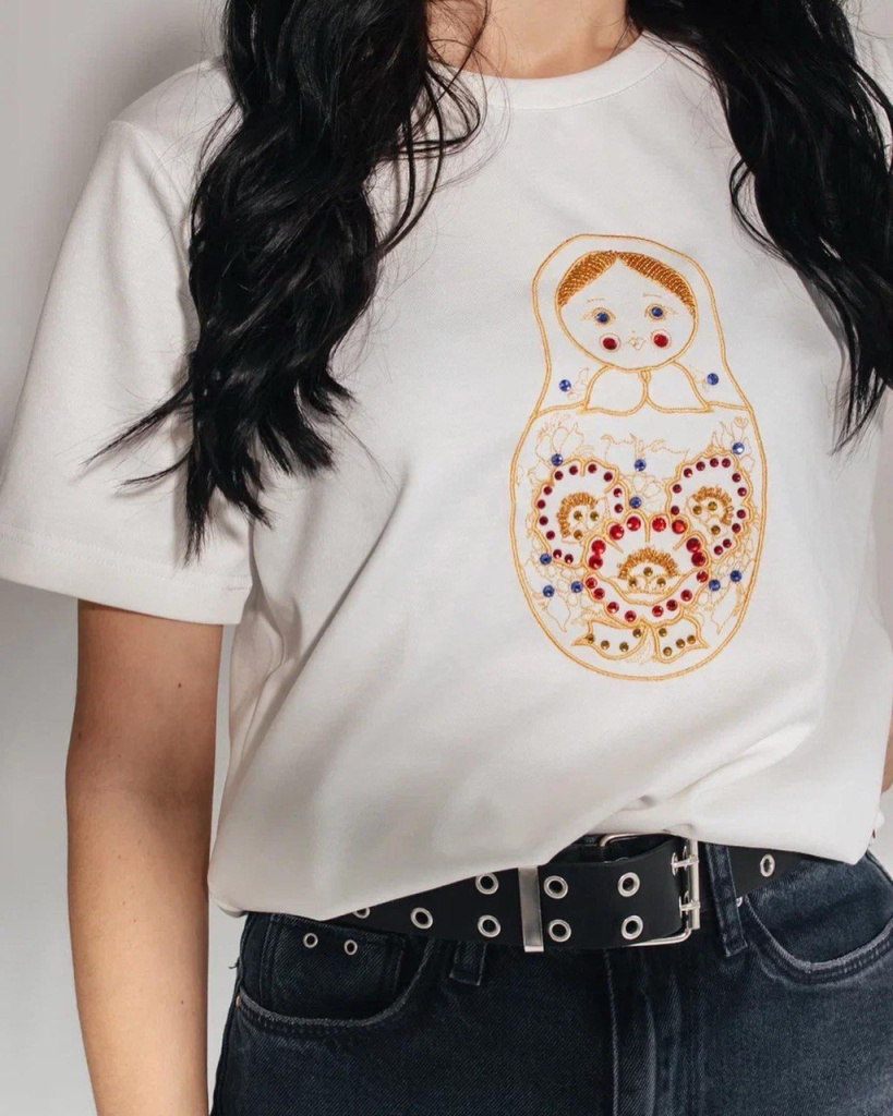 – Это синергия. Во-первых, люди всегда тянутся к искусству – к вещам с душой, к ручной работе. Во-вторых, политический фон: потребность сплотиться, вернуться к своим истокам, ощутить опору в родном. Плюс Крым только присоединился к России. В тот момент ещё не было тренда на «русское», матрёшки и кокошники никто не носил. Но я почувствовала, что народ созрел. Конечно, расписывать каждую вещь вручную долго и дорого. Поэтому позже мы сделали вышивку, создали свой дизайн, а затем по запросам клиентов добавили стразы. Так появилась футболка с матрёшкой, и она действительно разлетелась. Покупали уже по всей стране.