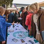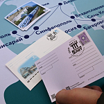 Прямо на платформе можно было подписать друзьям или самому себе юбилейную открытку и опустить её в мобильный почтовый ящик, установленный «Почтой Крыма».