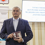 Глава Крыма Сергей Аксёнов вручил медали «За мужество и доблесть» медработникам-добровольцам, которые выезжали в Донецкую народную республику для оказания помощи местным жителям.
