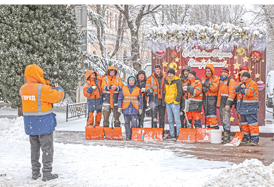 Замело и крымскую столицу, но симферопольские коммунальщики принялись за свою непростую работу с хорошим, боевым настроением. И даже улучили минутку для памятного снимка.