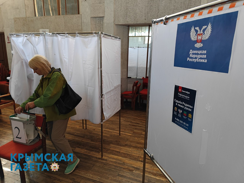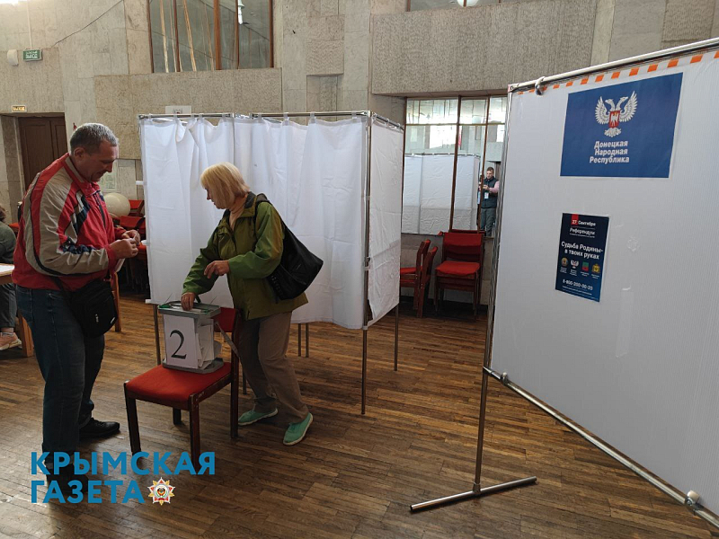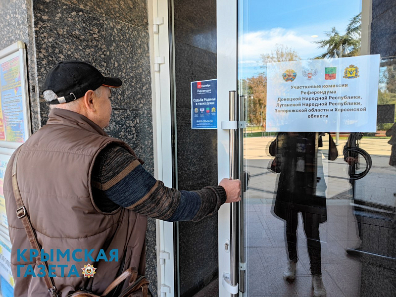 В Крыму продолжают работу участки для голосования на референдуме о вхождении Донецкой и Луганской народной республик, а также Херсонской и Запорожской областей в состав Российской Федерации.