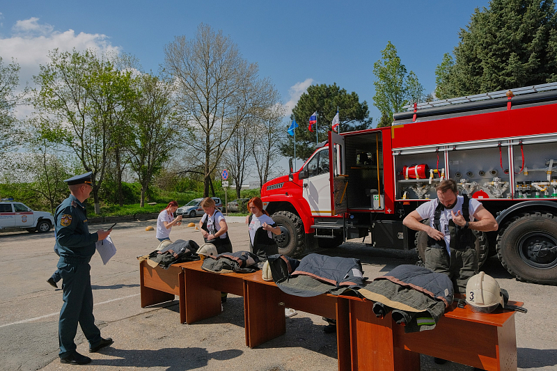 Пять команд журналистов получили шанс на один день сменить амплуа: не брать интервью у пожарных, а самому стать частью их команды. «Пожар» тушили представители «Крымской газеты», «Крым 24», ГТРК «Таврида», Министерства внутренней политики, информации и связи РК и команда Центра управления регионом, которая, к слову, и заняла первое место.