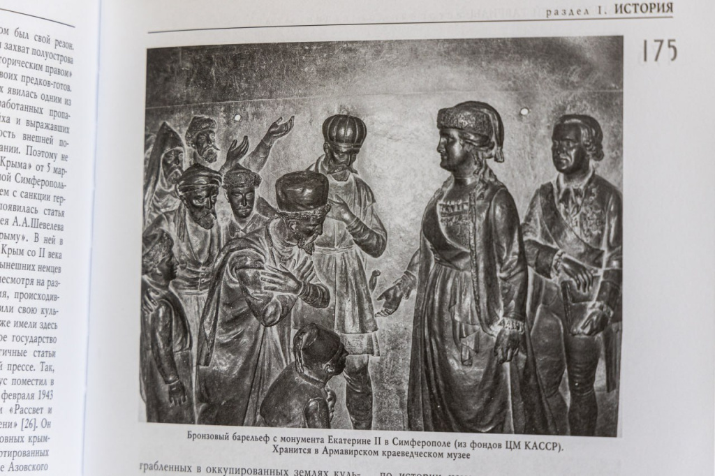 За прошедшие 80 лет что-то удалось найти. К сожалению, найденные предметы можно пересчитать на пальцах одной руки. Один из них – бронзовый барельеф с монумента Екатерине Второй в Симферополе. Он был в списках эвакуированных предметов. Сегодня хранится в Армавирском краеведческом музее. А не так давно был найден второй том книги Петра Симона Палласа «Путешествие в южные наместничества Российской империи».