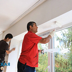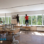 В Новофедоровке восстанавливают школу и детский сад. В школе устанавливают новые окна, а в детском саду ремонтируют потолочные блоки.