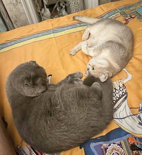 – У нас классическая семья кошатников. Сегодня у нас живут Боня и Фима. Боне девять лет, а Серафиме два года. Она очень озорная и игривая, но не могу сказать, что ласковая. Ласковый скорее Боня, и он очень мудрый. Наверное, благодаря его мужской мудрости они отлично ладят друг с другом и неразлучны. Совсем недавно мы готовились принять в семью третью кошечку – знаменитую Мусю, которая выжила после падения с «Ласточкиного гнезда». С таким предложением обратились волонтёры. Мы, конечно, семьёй поддержали. Но после обследования ветеринары приняли решение оставить её у себя, чтобы обеспечить ей правильный медицинский уход. Решение целиком и полностью поддержала.