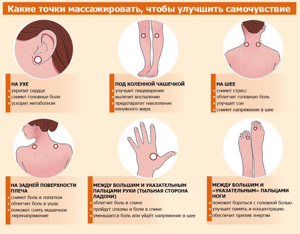 Какие точки массажировать, чтобы улучшить самочувствие - Инфографика