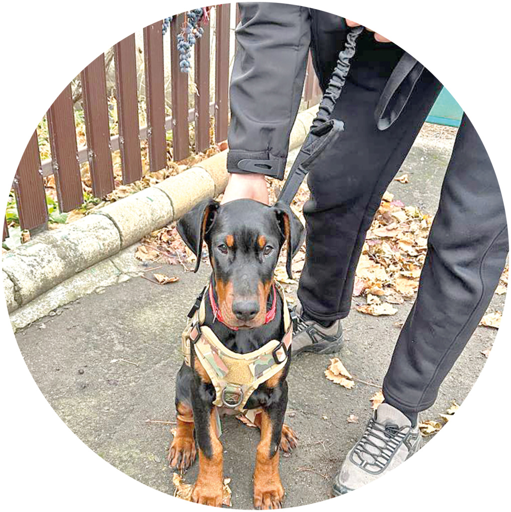 – В прошлом году мне на день рождения волонтёры привезли доберманов Грома и Адель. Два месяца назад Аделька родила восемь щенят... Что тут началось! Все ко мне в очередь за щенками выстроились, чуть до драки не дошло. Ну а кому не достались – тому в следующий раз. Растут красотульки быстро, все в разноцветных ошейниках, целая рота хвостатых бойцов подрастает. Надо бы их уже тренировать, но пока мы их только балуем.