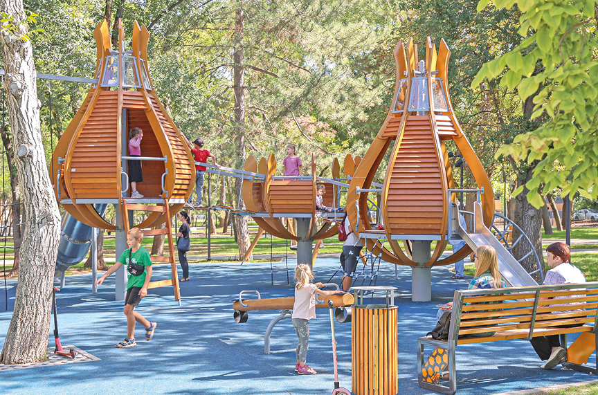 Проследили за ходом реконструкции. Готовность объекта – более 97%. Завершено устройство покрытия, установлены десятки скамеек и качелей, построен скейт-парк площадью 260 кв. м, обновлены спортивные площадки и детская зона. В это же время благо-устраиваются Детский парк и парк имени