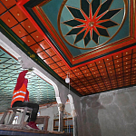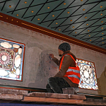 - Конечно, самые затратные работы - работа художников-реставраторов. Это специалисты, аттестованные Минкультом РФ. Они воссоздают живопись не только на стенах, но и на деревянных элементах, дверях, витражах. Это тонкая работа, и её стоимость формирует значительную часть сметы, - уточняет директор.