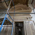 Мы заглянули и в Главный корпус – здесь работы самые тонкие и художественные. Реставрация требует ювелирной точности: художники поднимают исторические слои по старинным рисункам, архивным чертежам, фотографиям XIX века. На месте постепенно открываются новые фрагменты декора - процесс сложный и постоянно корректируемый. Предполагается, что северная часть Главного корпуса будет завершена в мае 2026 года.