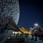 Самый большой объект - 12-метровый космонавт, который держит в руке стеклянный шар. В отражении все желающие могут увидеть себя самих и сделать оригинальное селфи с необычного ракурса.