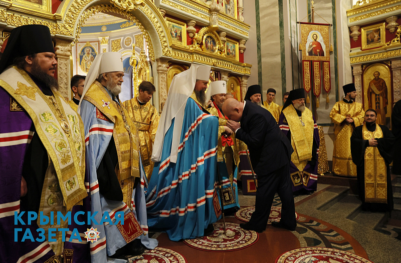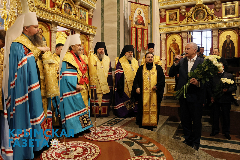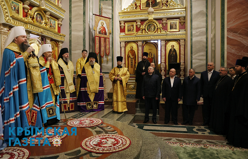 В кафедральном Александро-Невском соборе Симферополя состоялась Архиерейская Божественная литургия и соборный молебен. В богослужении принял участие глава Крыма Сергей Аксёнов.