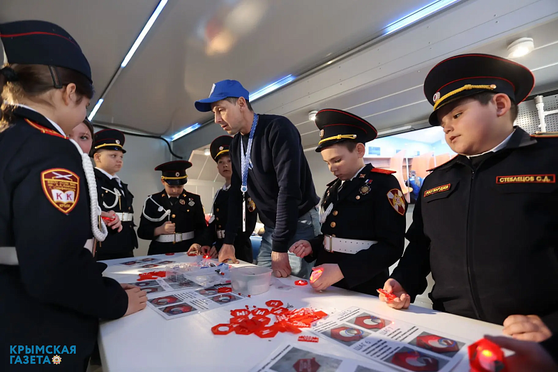 В центре крымской столицы открылся мобильный мультимедийный исторический парк "Россия – моя история", который сочетает цифровые технологии, интерактивный формат и практическое знакомство с профессиями.