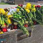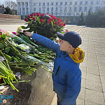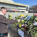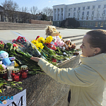 В память о погибших в «Крокус Сити Холле» жители Симферополя семьями возлагают цветы к стихийному мемориалу на площади Ленина.