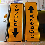 Самые частые в производстве знаки – «Уступи дорогу» (треугольник) и «Главная дорога» (ромб). Стоимость дорожных знаков варьируется от 1 200 рублей за самый простой до 70 тысяч за знаки индивидуального проектирования, например, указатели населённых пунктов на трассах. В среднем один знак обходится бюджету примерно в 3 000 рублей. Стандартный срок их службы – от 5 до 10 лет.