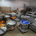 На предприятии ежедневно изготавливают около 200 дорожных знаков, а месячная выработка составляет примерно
