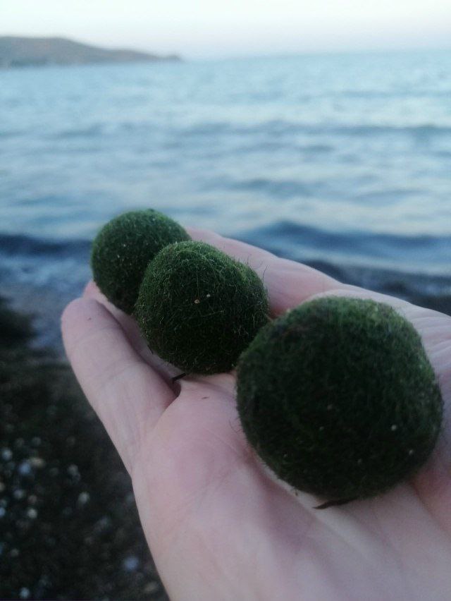 Кстати, этот род этой зелёной водоросли в Черном море представлен десятью видами, но не все они способны формировать такие шарообразные формы. Кладофора имеет длинные клетки и осевые побеги (у водорослей нет корней, как пример у деревьев) которые скрепляются друг с другом в период массового развития, особенно летом. Если брать шарики в руки, то они достаточно плотные на ощупь. Их форма обусловлена воздействием морских волн, создающих идеально округлые структуры. Штормовая погода приносит эти сформированные природой зелёные жемчужины на берег.