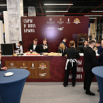 Гостей форума встречает стенд крымского виноделия, представляющий возможности региона в гастротуризме.