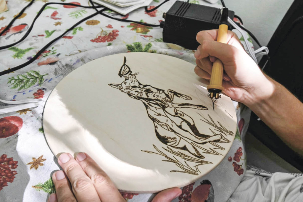 Сегодня в мастерских четыре направления: графика, выжигание, швейное и гончарное дело. Выбирали их, ориентируясь на интересы детей. Первой появилась швейная и гончарная мастерская, затем подключили графику, а позже – выжигание. Оно неожиданно стало самым популярным направлением, хотя раньше многим казалось «советским пережитком».
