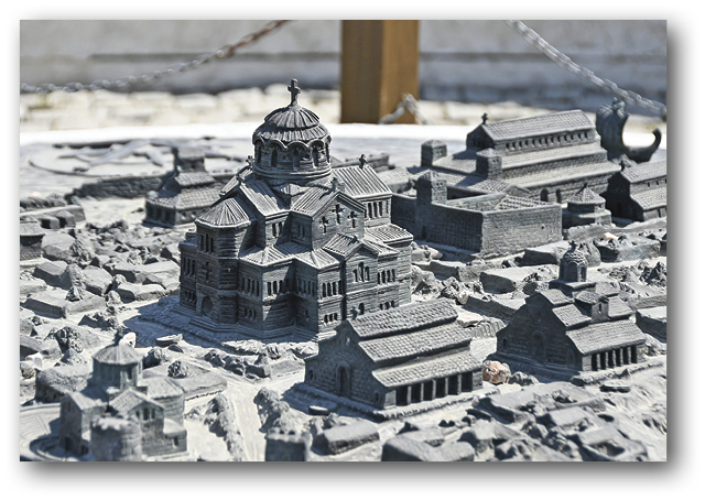 Проект представляет собой византийский город в натуральную величину. Здания обрамляют широкую главную улицу, пролегающую через весь город и соединяющую главный вход с храмом Святого князя Владимира.