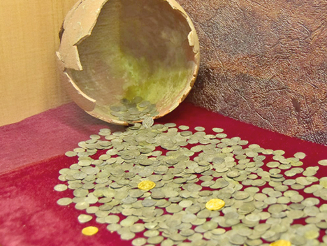 Одно из исторических имён Чуфут-Кале переводится как «крепость драгоценностей». Справедливость этого названия доказывает клад, обнаруженный у входа в осадный колодец. Горшок заполняли почти пять килограммов золотых и серебряных монет XIV–XV веков.