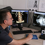 – В конце июня в больницу поступила пациентка с тяжелейшим переломом позвоночника (разрыв позвоночного столба). Фактические её тело было разорвано пополам. Ей требовалось срочное оперативное лечение. Ночью группа в течение пяти часов провела сложнейшую операцию. Пострадал не только сам позвоночник, но и внутренние органы – нервная система, твёрдая мозговая оболочка спинного мозга. Всё удалось восстановить. После проведения оперативного лечения удалось полностью восстановить сагиттальный баланс, так называемый фронтальный баланс, полностью сопоставить все отломки. А также собрать с помощью микрохирургической техники оборванные корешки спинного мозга, герметизировать твёрдую мозговую оболочку. Ей установили транспедикулярную стабилизацию позвоночника. Скорей всего она сниматься не будет, хотя фиксацию можно демонтировать после того, как всё срастётся, но это необязательное условие, – рассказал заведующий отделением нейрохирургии Константин Семкин.