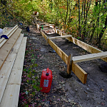 – Обустроены ступени с перилами для безопасности и мусорные контейнеры в надежде на то, что туристы начнут убирать мусор вовремя и не станут разбрасывать его по территории. Во время строительства использовались пиломатериалы из лиственницы и местной сосны.