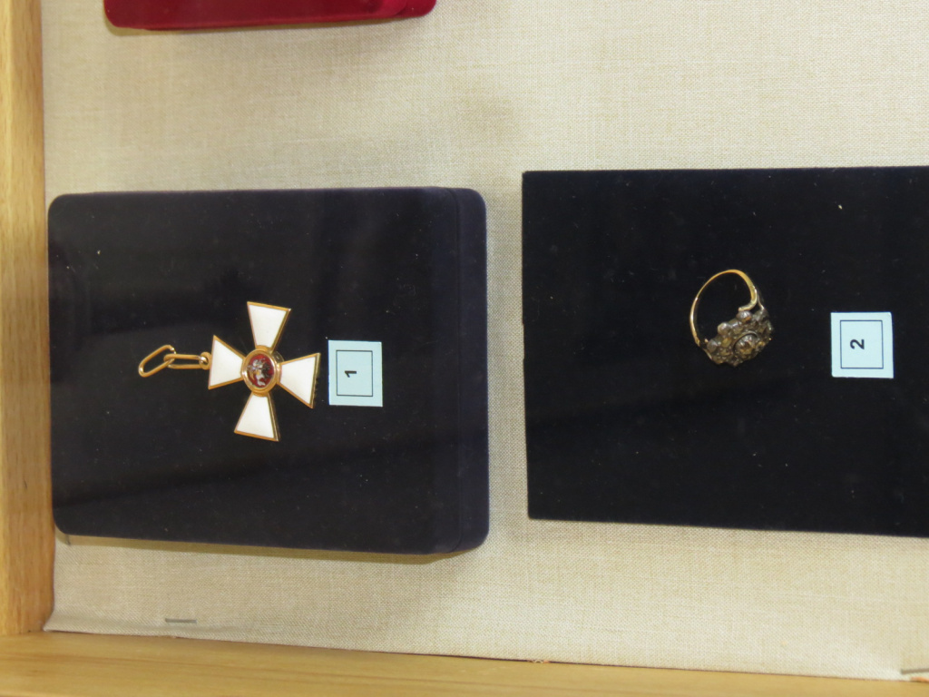 В витринах зрители увидели саблю Григория Потёмкина, которую он получил в награду от Екатерины II после заключения Кючук-Кайнарджийского мирного договора в 1774 году. В XIX веке его потомки у Карла Фаберже заказали серебряный эфес с вензелем Екатерины II.